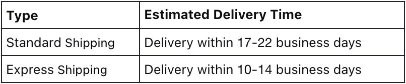 If your order does not arrive at your address within 20 business days of shipment, we will provide a full refund.